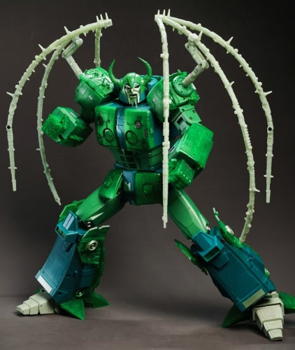 01S01G Bacteria is a massive figure standing over 17 inches tall that can convert from robot mode to sphere mode. Bacteria is fully articulated and features premium details.
