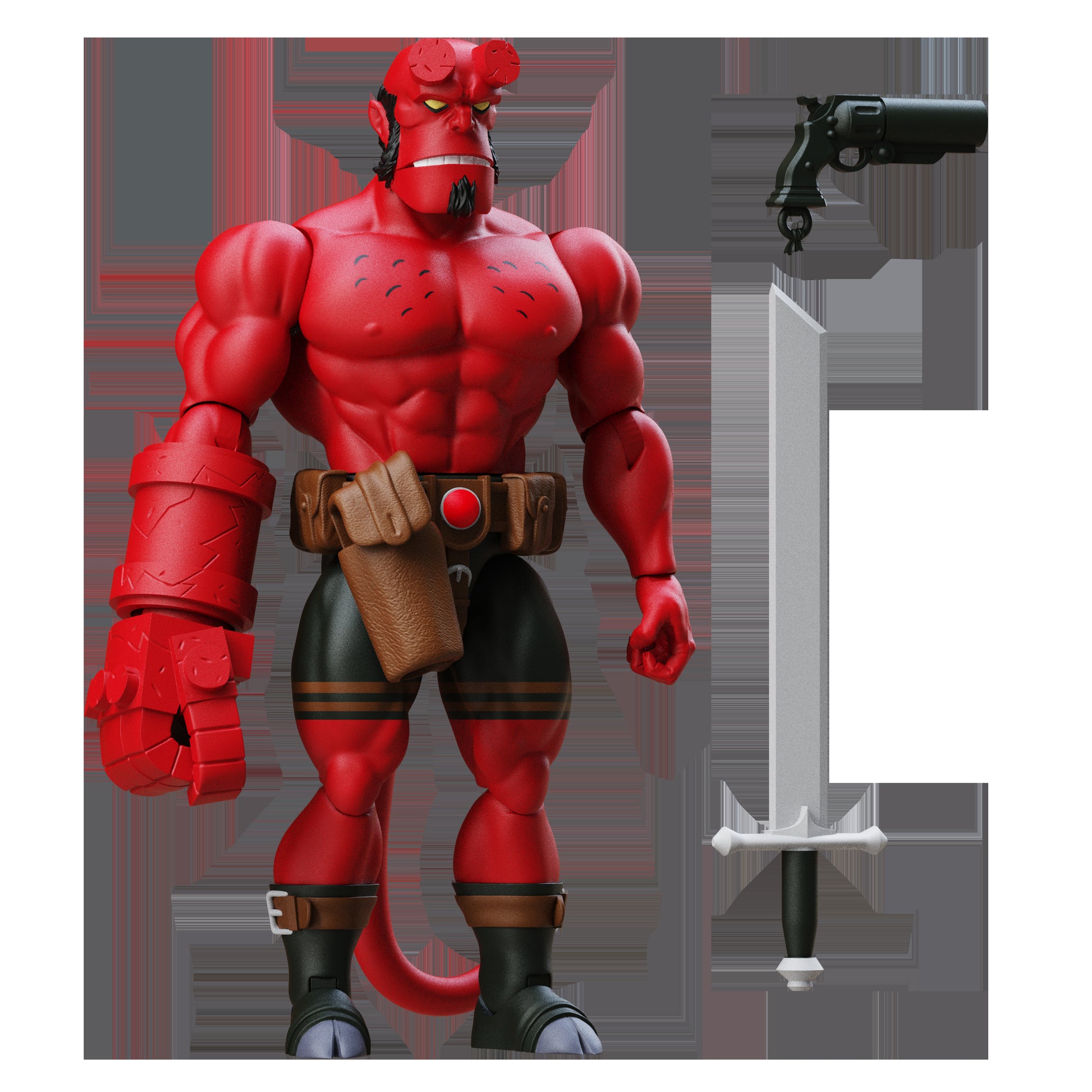 From Boss Fight Studio. Mike Mignola's Hellboy Universe comes to life in collectible figure form like never before! Inspired by the beloved comics that have been known the world over for 30 years! Beautifully stylized 1/12th scale sculpts, extensive articulation and story-specific accessories make every one of these figures a collectible masterpiece. Extend the adventure of "Box Full of Evil" with the Hellboy Accessory Pack! Includes a horned head and an angry, grimacing head, a closed fist Right Hand of Doom to deliver a real "BOOM" and an intricately made softgoods coat with sewn-in wire for posing! All fit perfectly on the Boss Fight Studio Wv1 Hellboy figure to maximize your display options. Window box packaging.