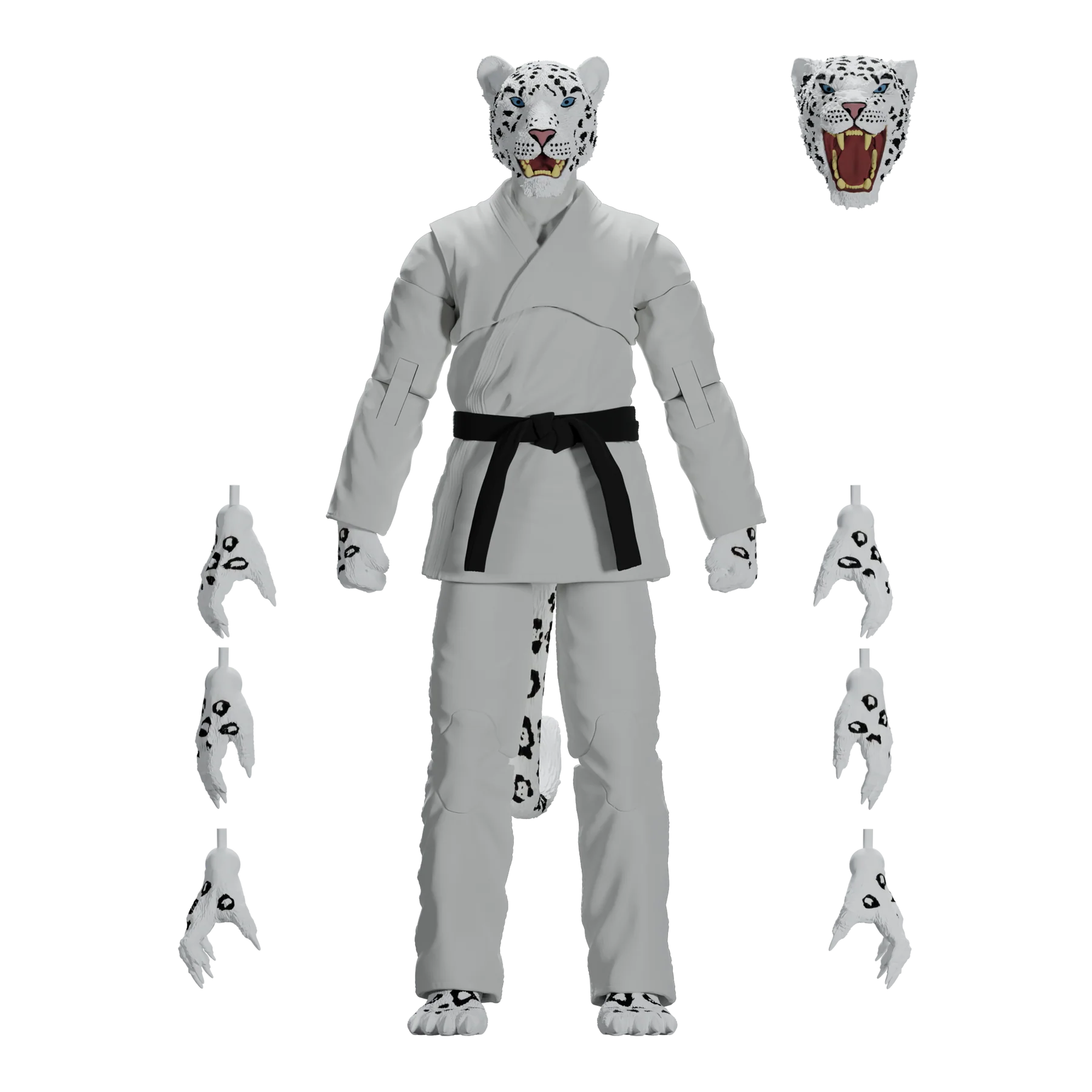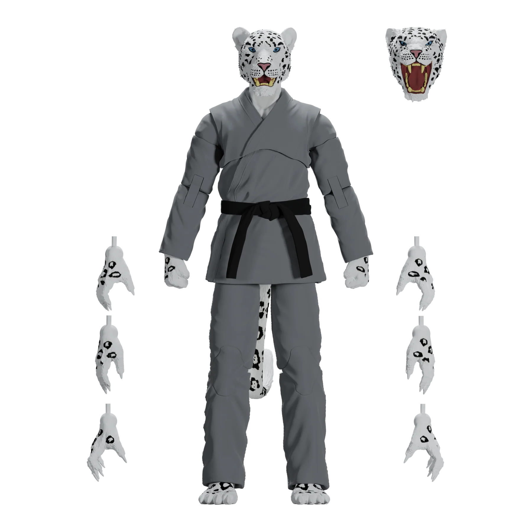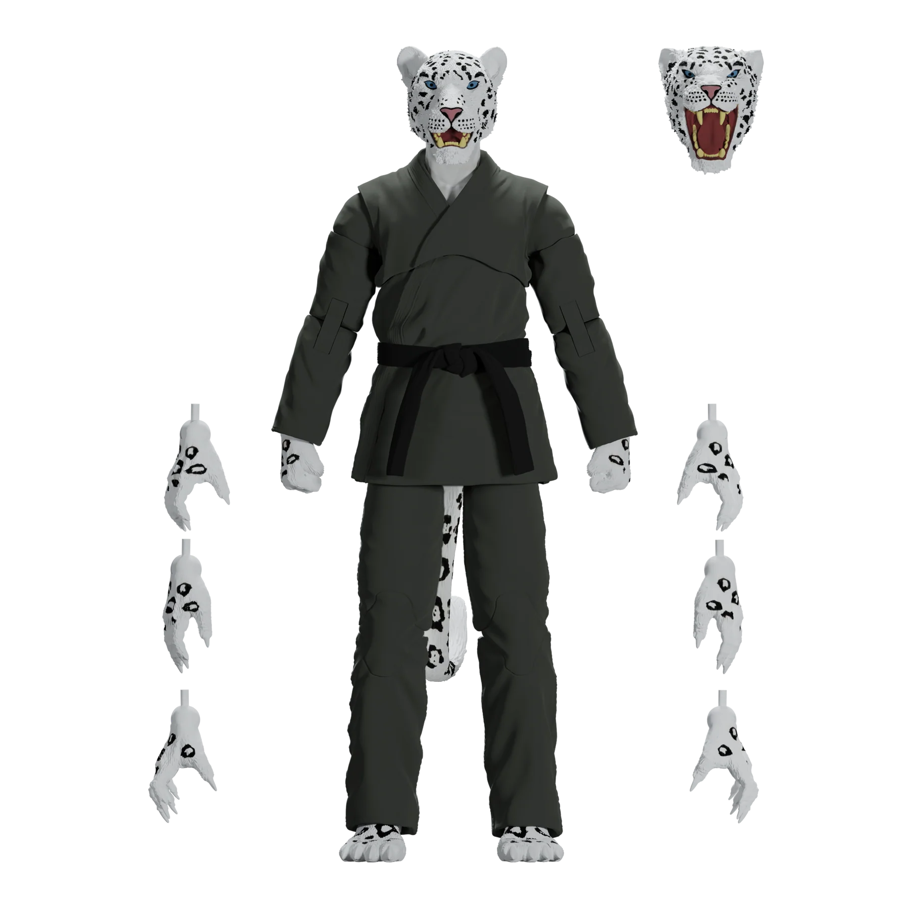 Unleash the fury of the mountains with the Zoo Jitsu Fighters Shadow the Snow Leopard Action Figure! Sculpted to perfection by the masters at Four Horsemen Studios, Shadow is fully poseable with 30 points of articulation, allowing you to recreate all your favorite snow leopard maneuvers or design your own fighting styles. But wait, there's more! Shadow includes not one, but TWO interchangeable heads to showcase his predatory prowess or battle-ready snarl. And if that wasn't enough, he comes equipped with a whopping eight interchangeable hands, allowing him to grapple, swipe, and fight for victory in any scenario.