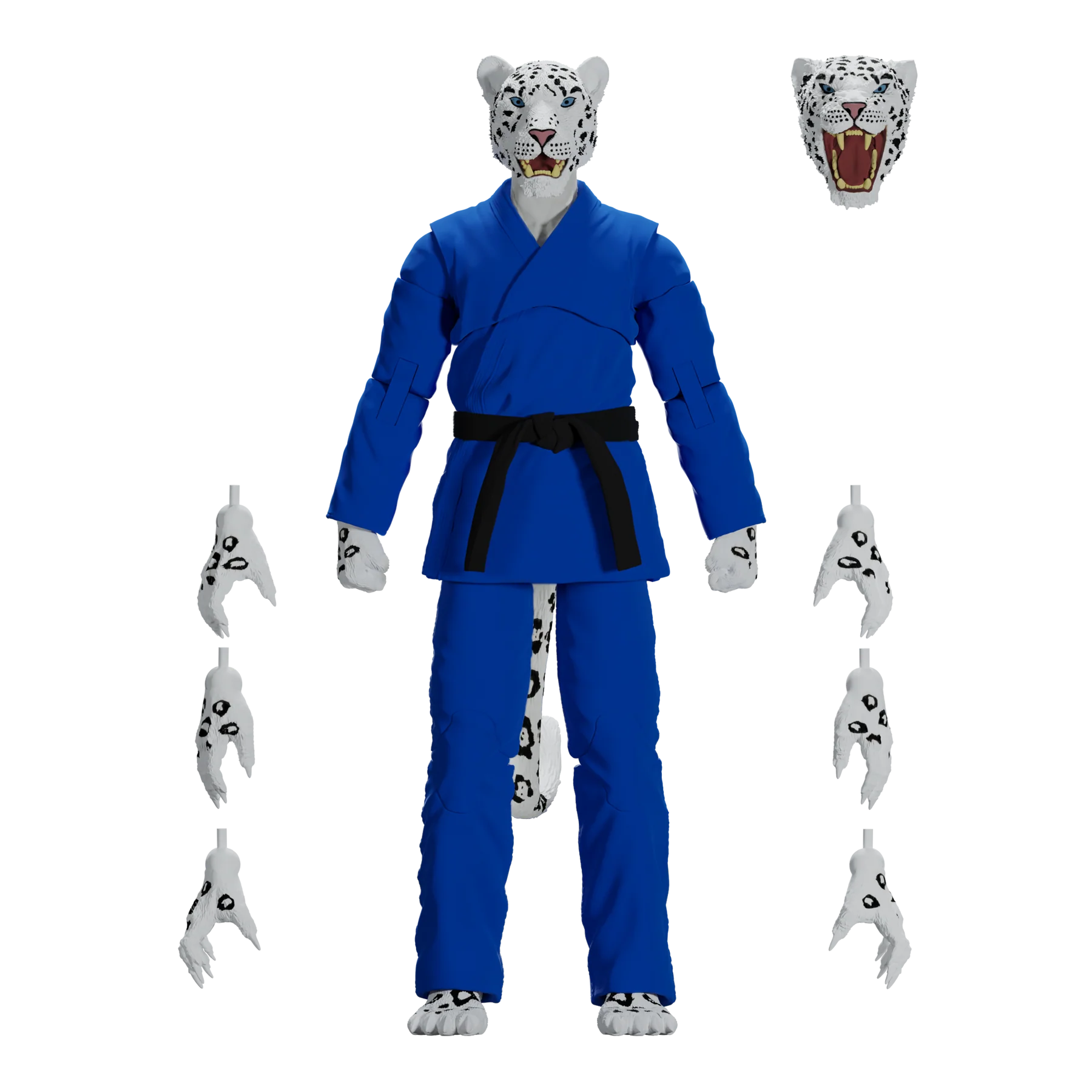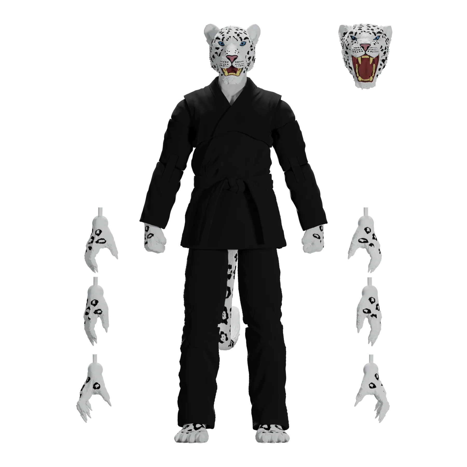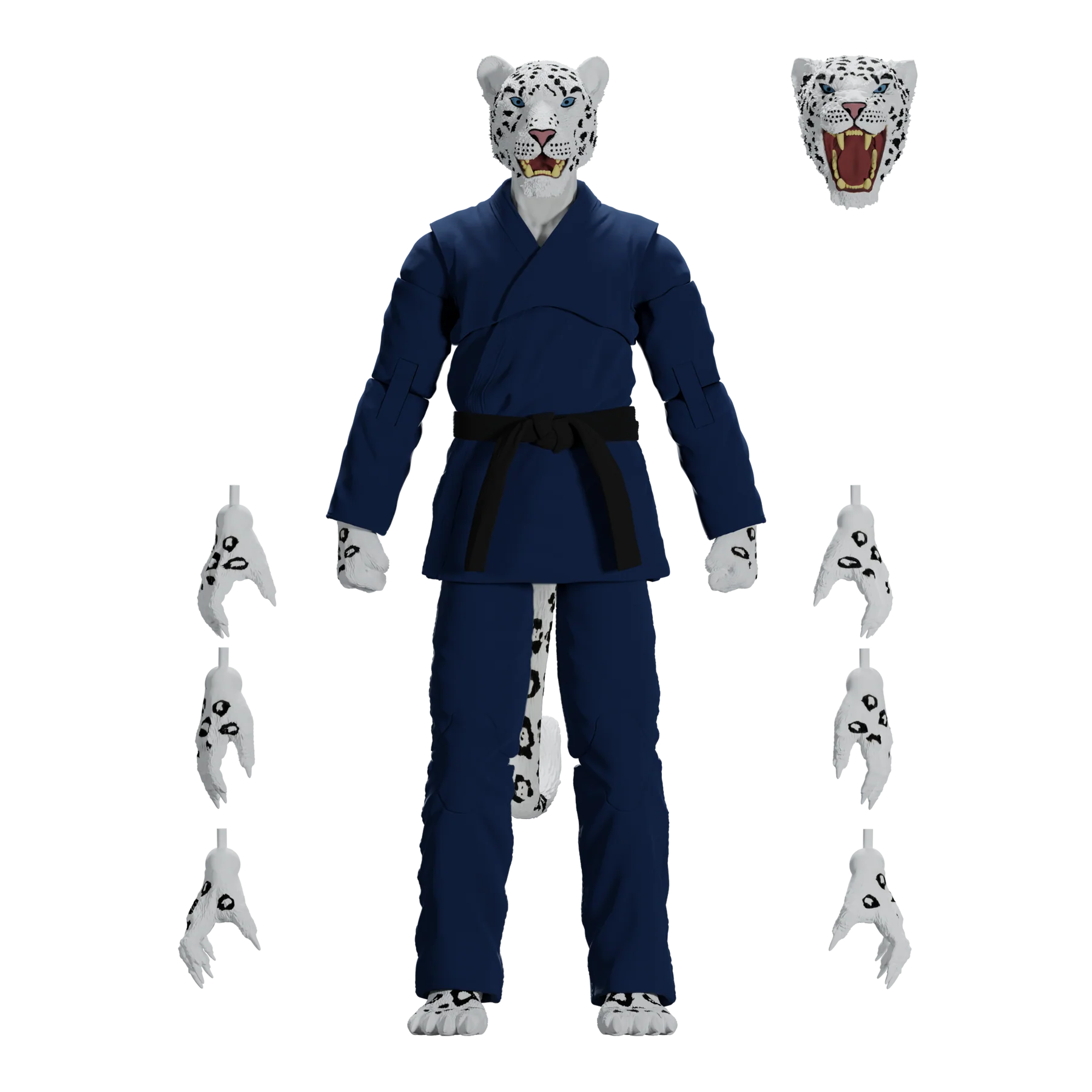 Unleash the fury of the mountains with the Zoo Jitsu Fighters Shadow the Snow Leopard Action Figure! Sculpted to perfection by the masters at Four Horsemen Studios, Shadow is fully poseable with 30 points of articulation, allowing you to recreate all your favorite snow leopard maneuvers or design your own fighting styles. But wait, there's more! Shadow includes not one, but TWO interchangeable heads to showcase his predatory prowess or battle-ready snarl. And if that wasn't enough, he comes equipped with a whopping eight interchangeable hands, allowing him to grapple, swipe, and fight for victory in any scenario.