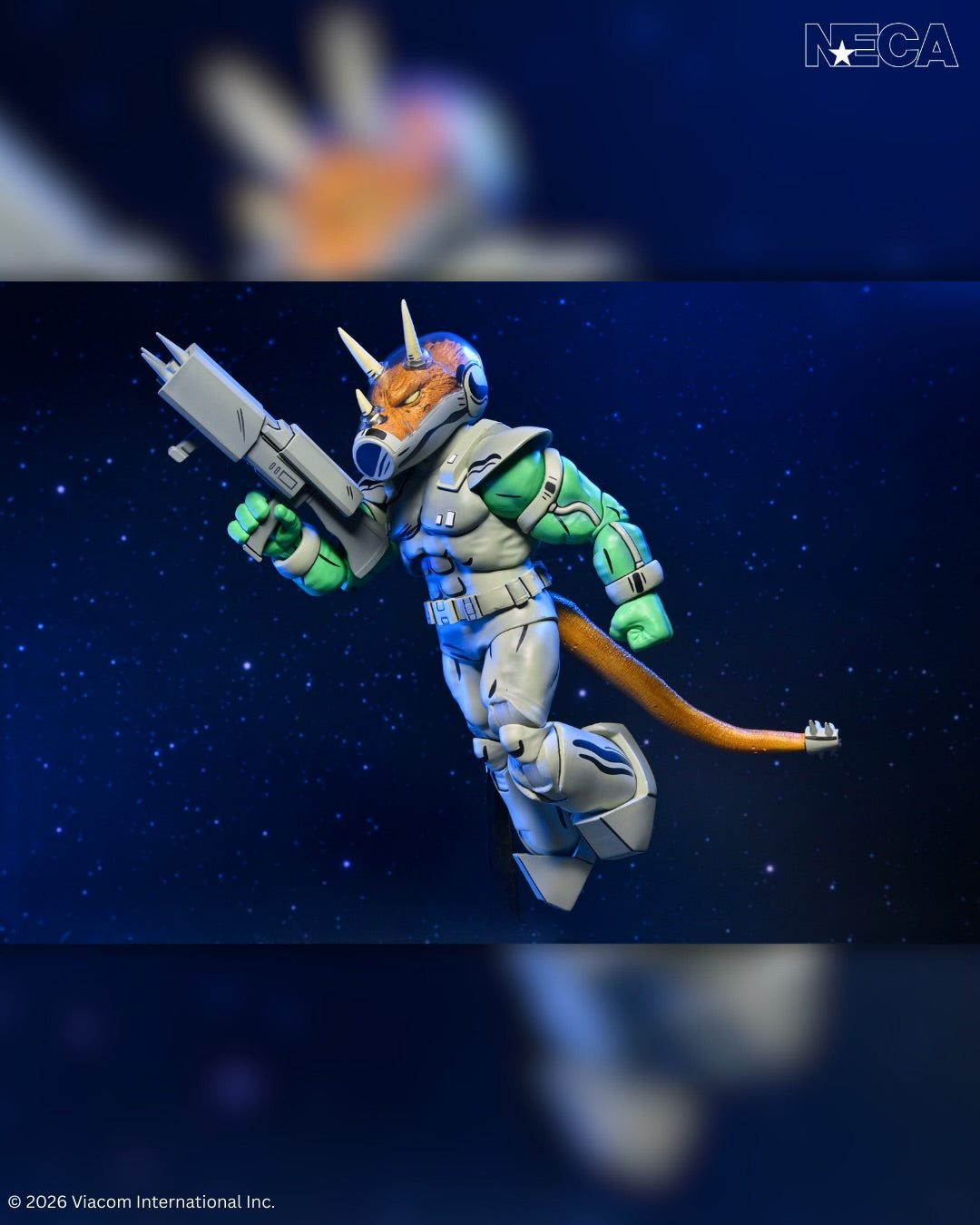 Invasion! The Triceraton Republic has arrived. NECA is sending in the Shock Commandos with this deluxe Triceraton action figure—as seen in issue #5 of Eastman & Laird’s Teenage Mutant Ninja Turtles comic books from Mirage Studios! Featuring an all-new sculpt, this oversized action figure stands in 7-inch scale and has a tail with bendy wire for posing. It also comes with interchangeable hands and a blaster. Presented in collector-friendly window box packaging with artwork by Peter Laird and Kevin Eastman.